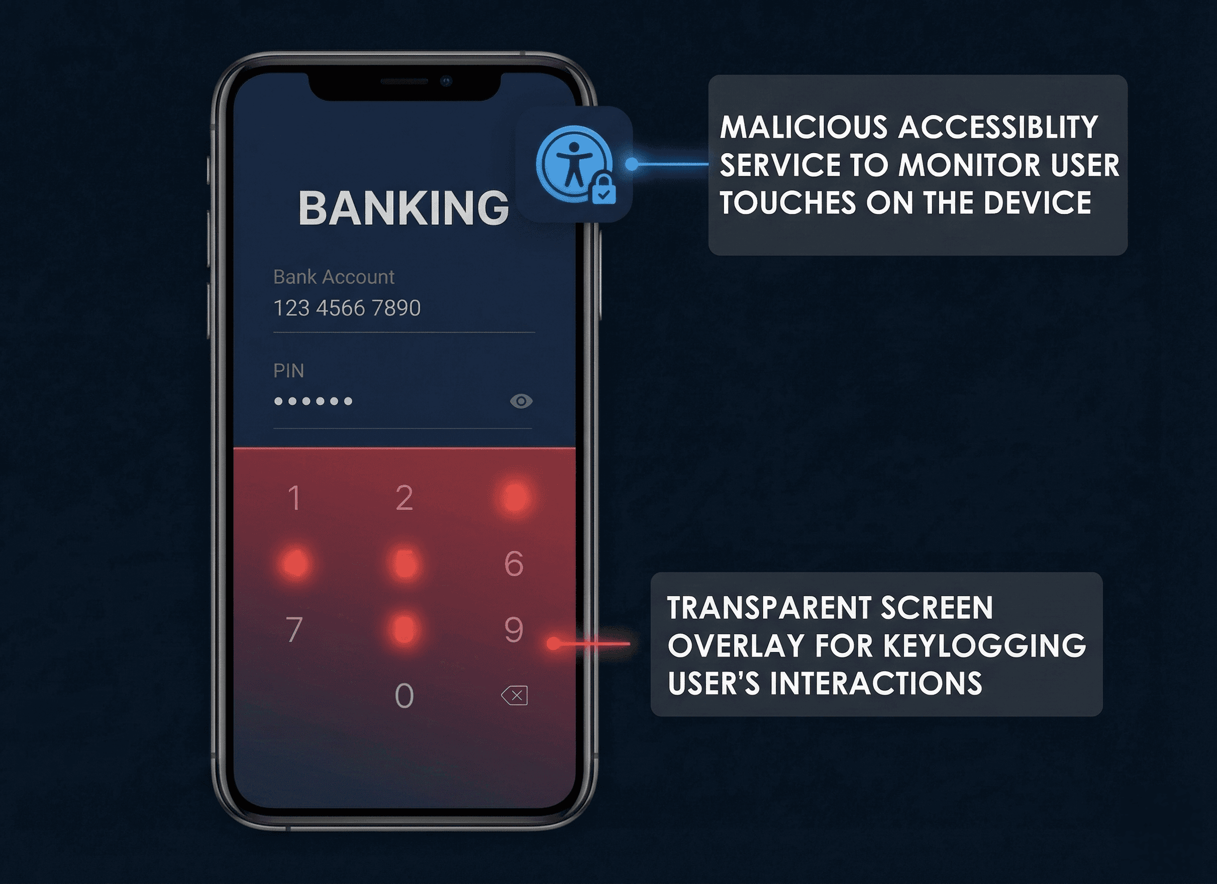 Android overlay attacks exploit invisible UI layers to steal credentials and manipulate mobile banking transactions.