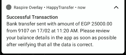 To demonstrate the real-world consequences of granting such permissions, our R&D team simulated the attack in a controlled environment. In this simulation, the "HappyTransfer" application serves as the targeted victim, representing an example of real-world financial application, while the "RASPIRE Overlay" application emulates the behavior of a malicious actor exploiting granted permissions to execute unauthorized transactions.
